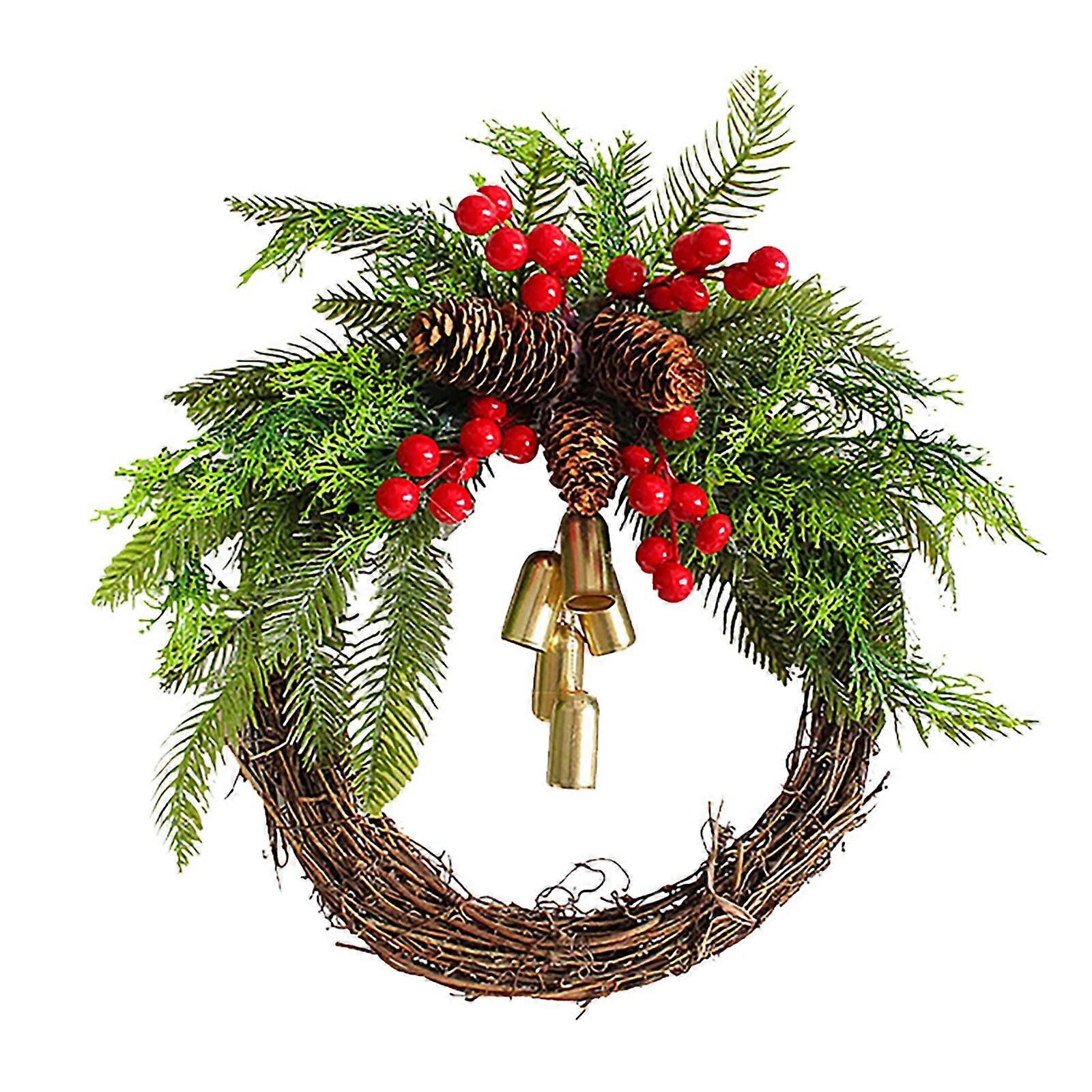 Poaug Spring Wreaths for Front Door - Farmhouse Christmas Wreath, Boho Holiday Wreath, Artificial Golden Bell Wreath, Handmade Grapevine Ring