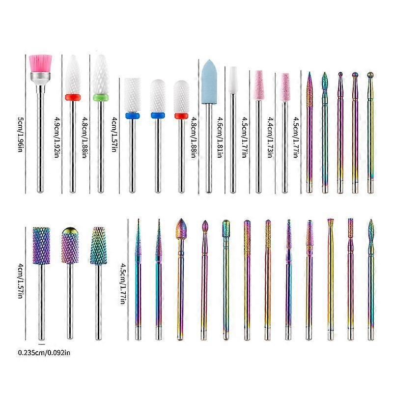 Nail Art Drill Bits with Storage Display Box, 30pcs Carbide Tungsten Grinding Head Set, Professional Manicure Nail Gel Polish Remover Tool