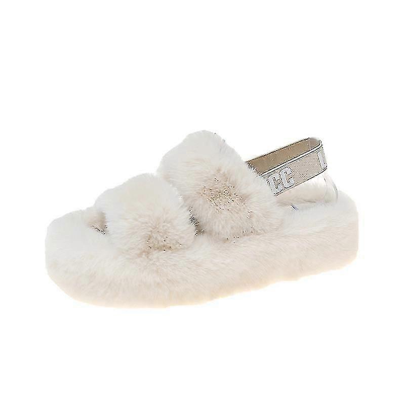 Women's Fuzzy Faux Fur Double Band Easy On/off Slide Slippers, Open Toe Band Soft Thickening Faux-fur Anti-slip Cozy Indoor/outdoor Plush