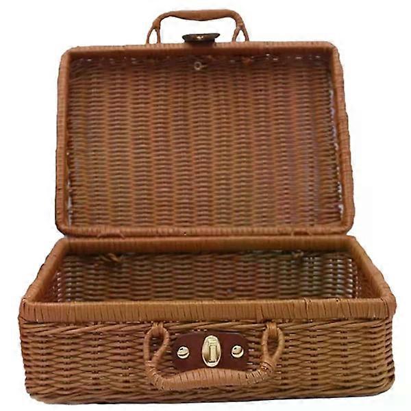 Picnic Basket, Woven Vintage Travel Bag in Wicker Basket Woven Storage Baskets Rattan Storage Box Picnic Weave L YC