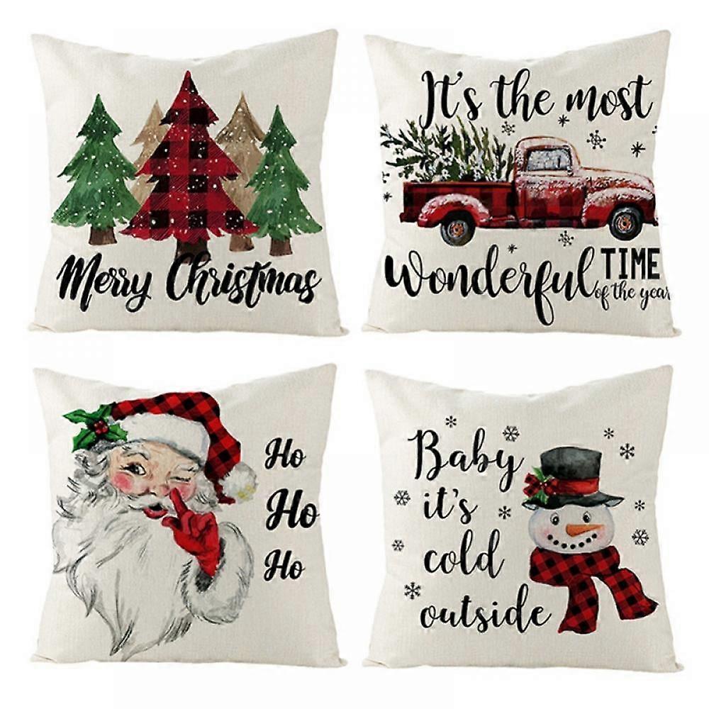 Christmas Pillow Covers 18 x 18 Inch Set of 4 Farmhouse Deer Pillowcase for Sofa Couch Christmas Decorations Cushion Pillow Case for Holiday Decor