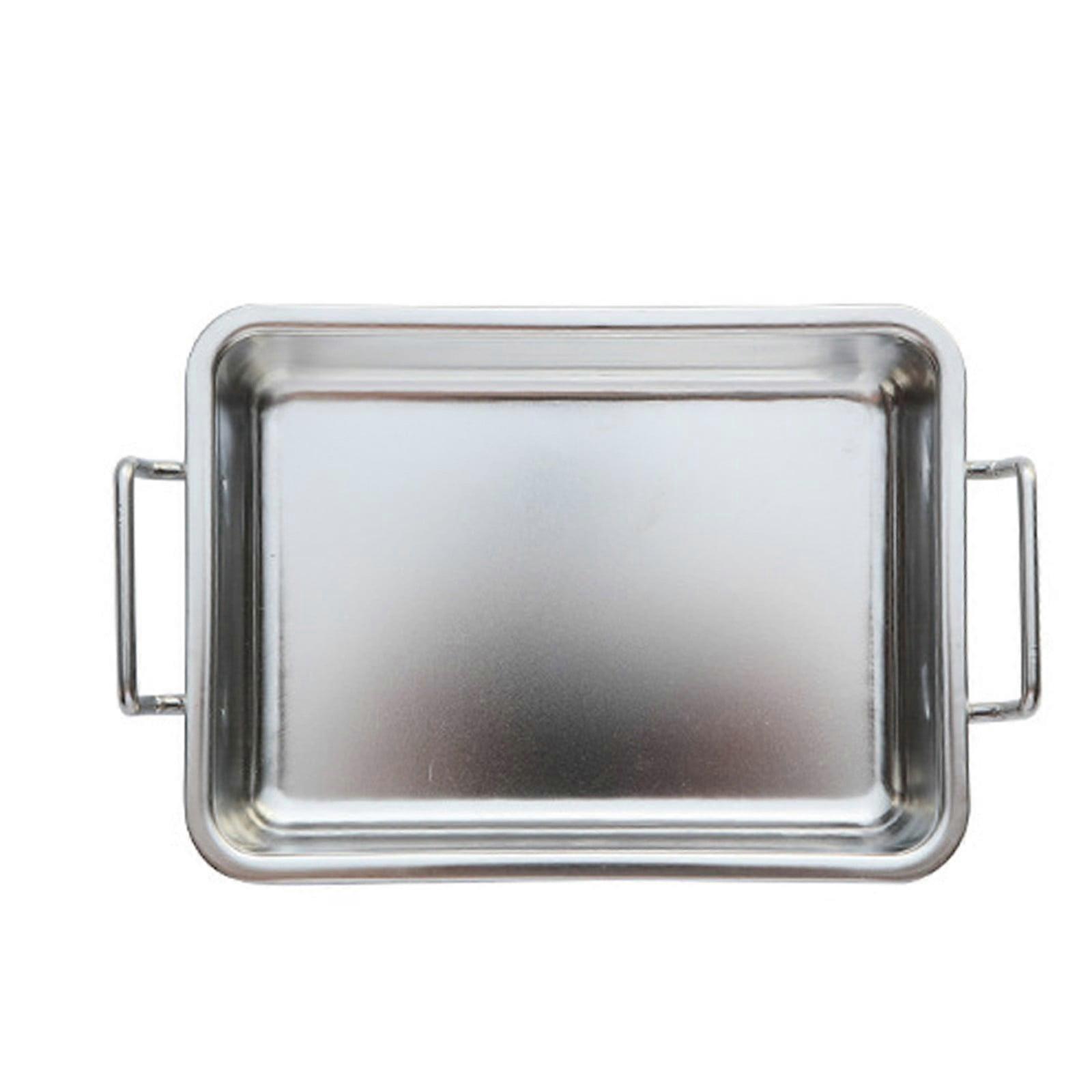 Stainless Steel Snack Tray with Ears, Barbecue Tray, Golden Square Plate for Fried Chicken, Dessert, Compatible with Restaurant Use (Silver 1)