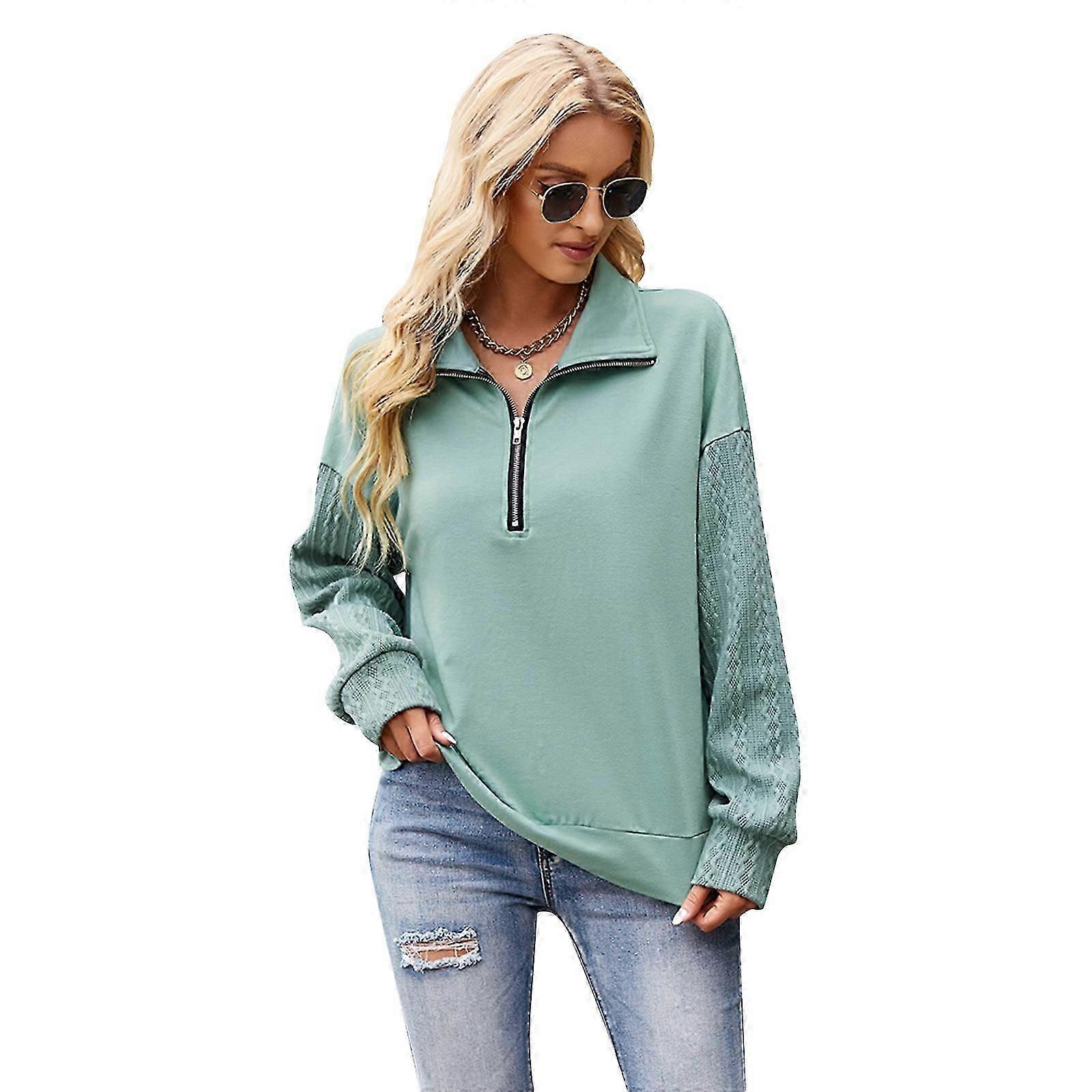Women Fashion Quilted Pattern Lightweight Zipper Long Sleeve Plain Casual Sweatshirts Pullovers Shirts Tops Sweatshirt White L