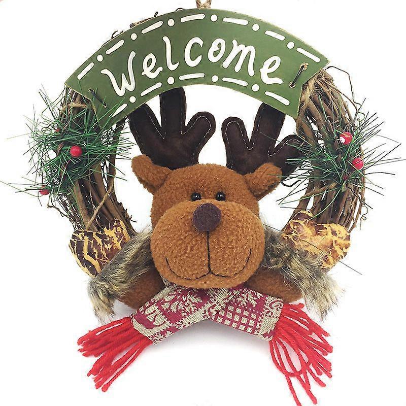 Snowman wreath with moose figure, welcome sign for the front door made of rattan and soft fabric, handmade Christmas wreath with pine needles, Christm