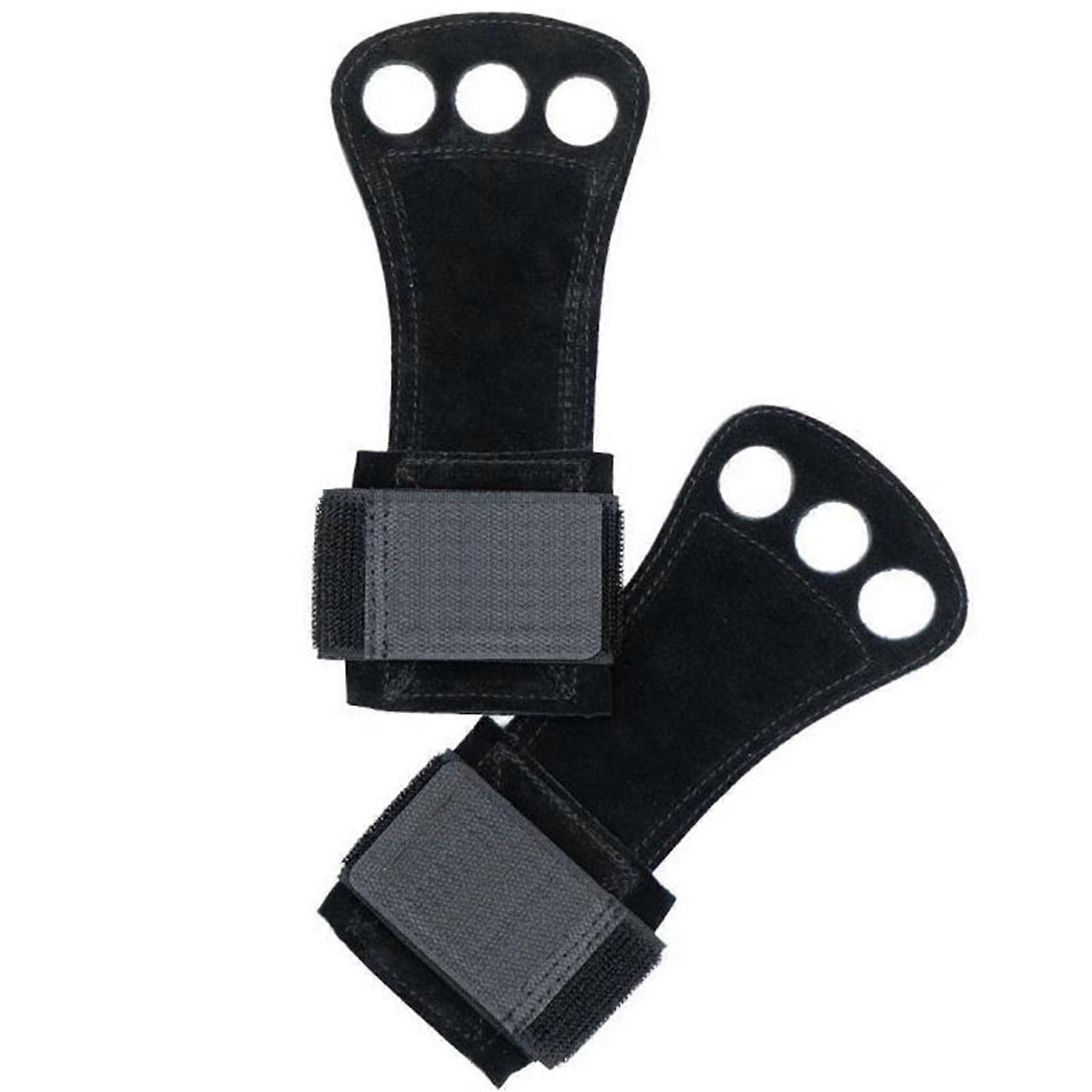 Weight Lifting Grip 3 Holes Leather Gymnastics Grips Hand Palm Protector with Wrist Strap for Pull Up Fitness Black