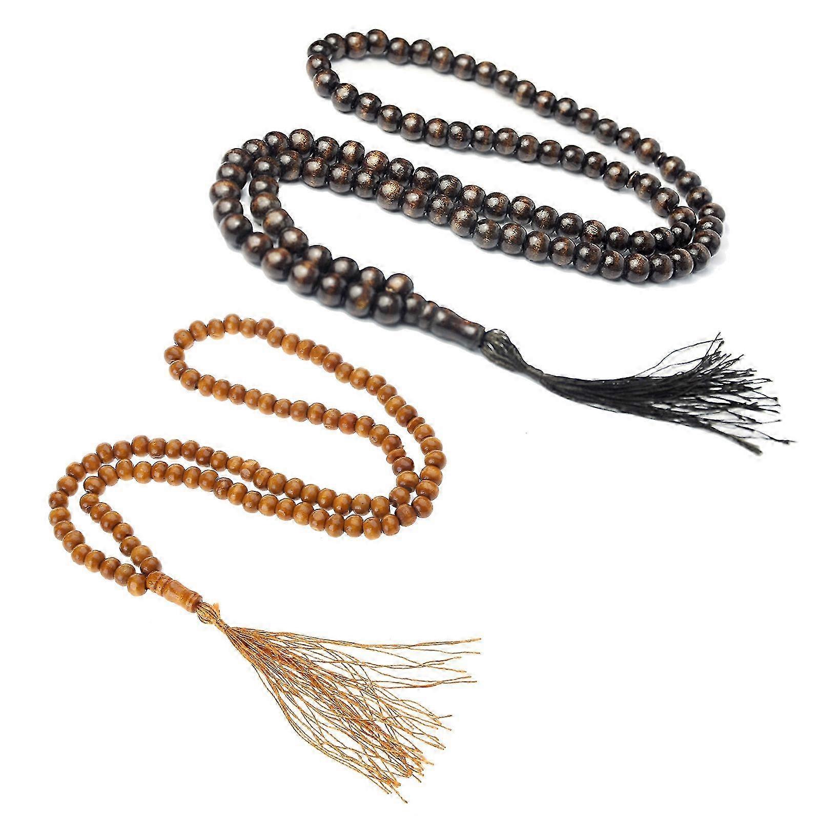 Natural 8mm Wood Beads Muslims Tasbih Prayer Beads 99 Wood Rosary Misbaha Beads Islamic Religion Eid Gift 25-26