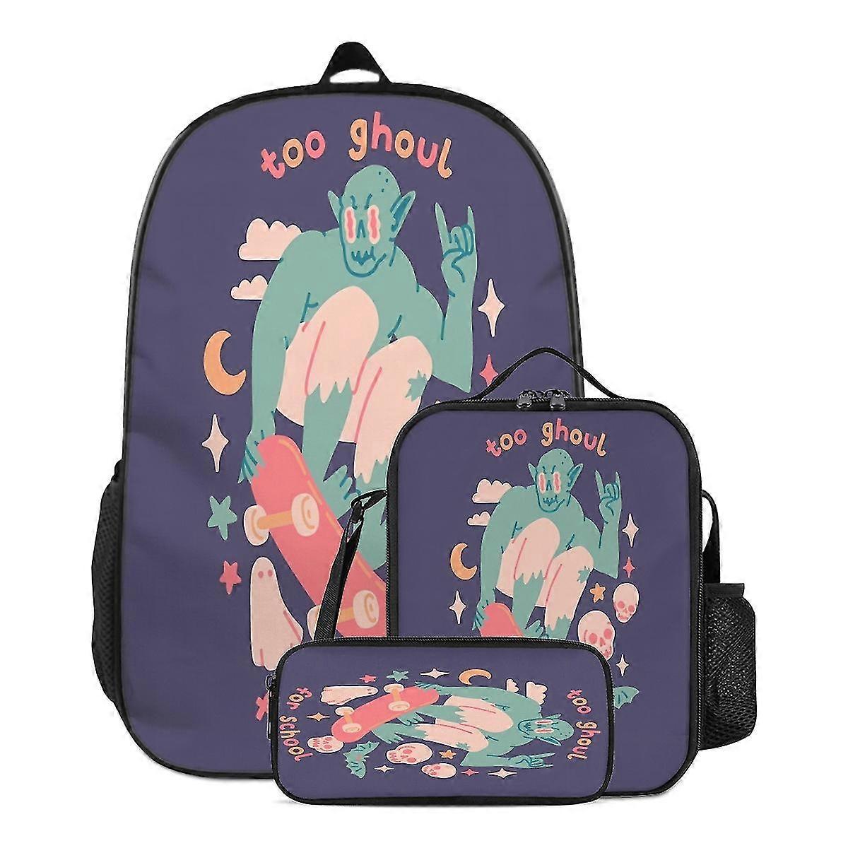 TOO GHOUL FOR SCHOOL School Backpack Daypack Laptop Bag with Lunch Box Pencil Case 25-26