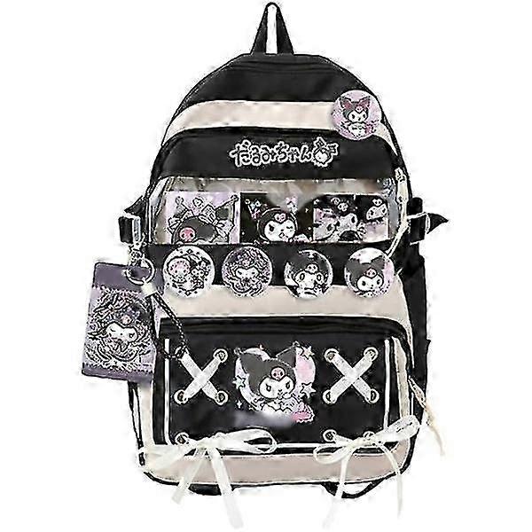 Anime Cinnamon Roll Backpack with Pin Kawaii Ita Bag Black College School Bag Cool Travel Bag for Teenagers Boys School Season Gifts-Black-