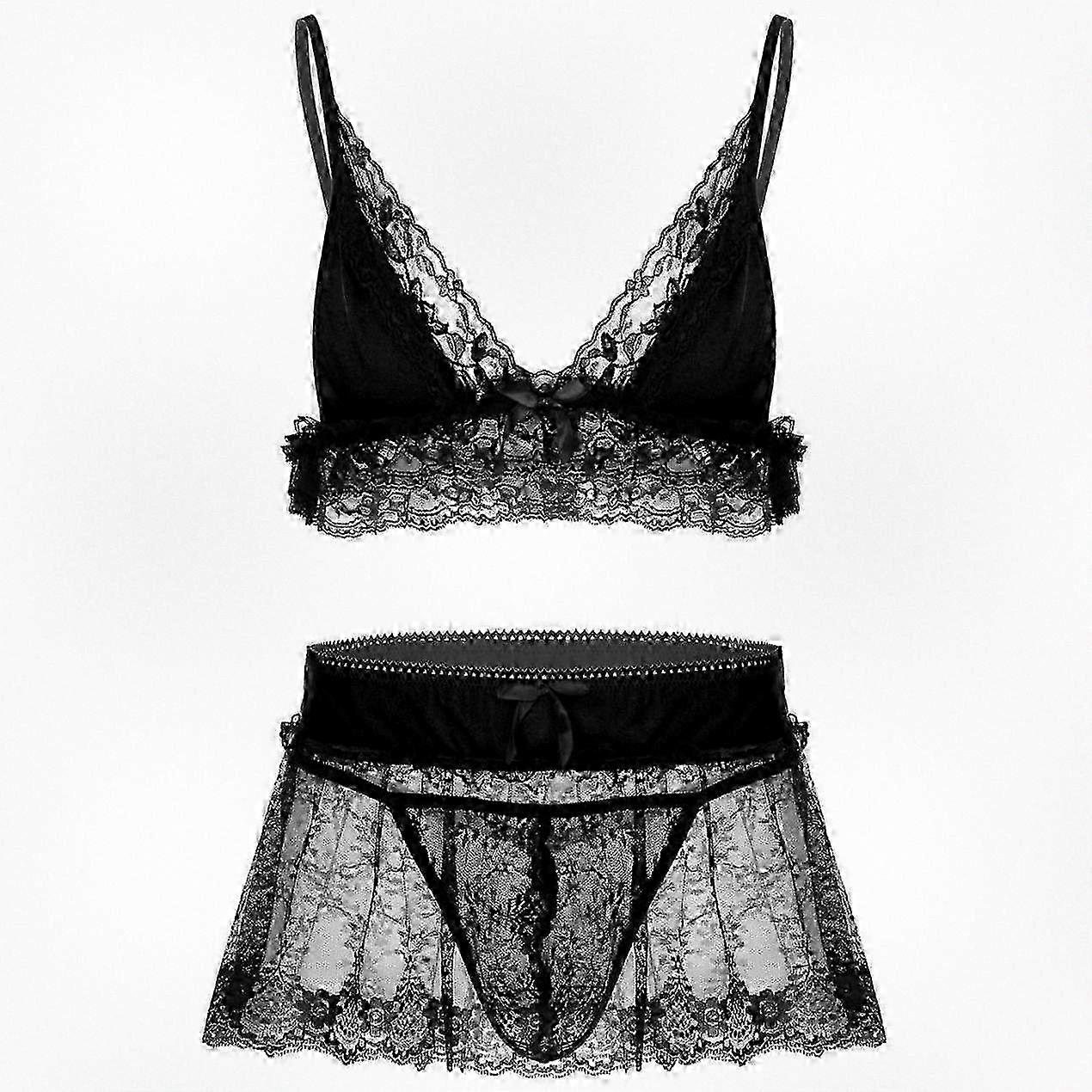 Men's Sissy Lingerie Set - Sheer Ruffled Lace Babydoll Nightwear & Crossdressing Underwear for Sensual Comfort 25-26