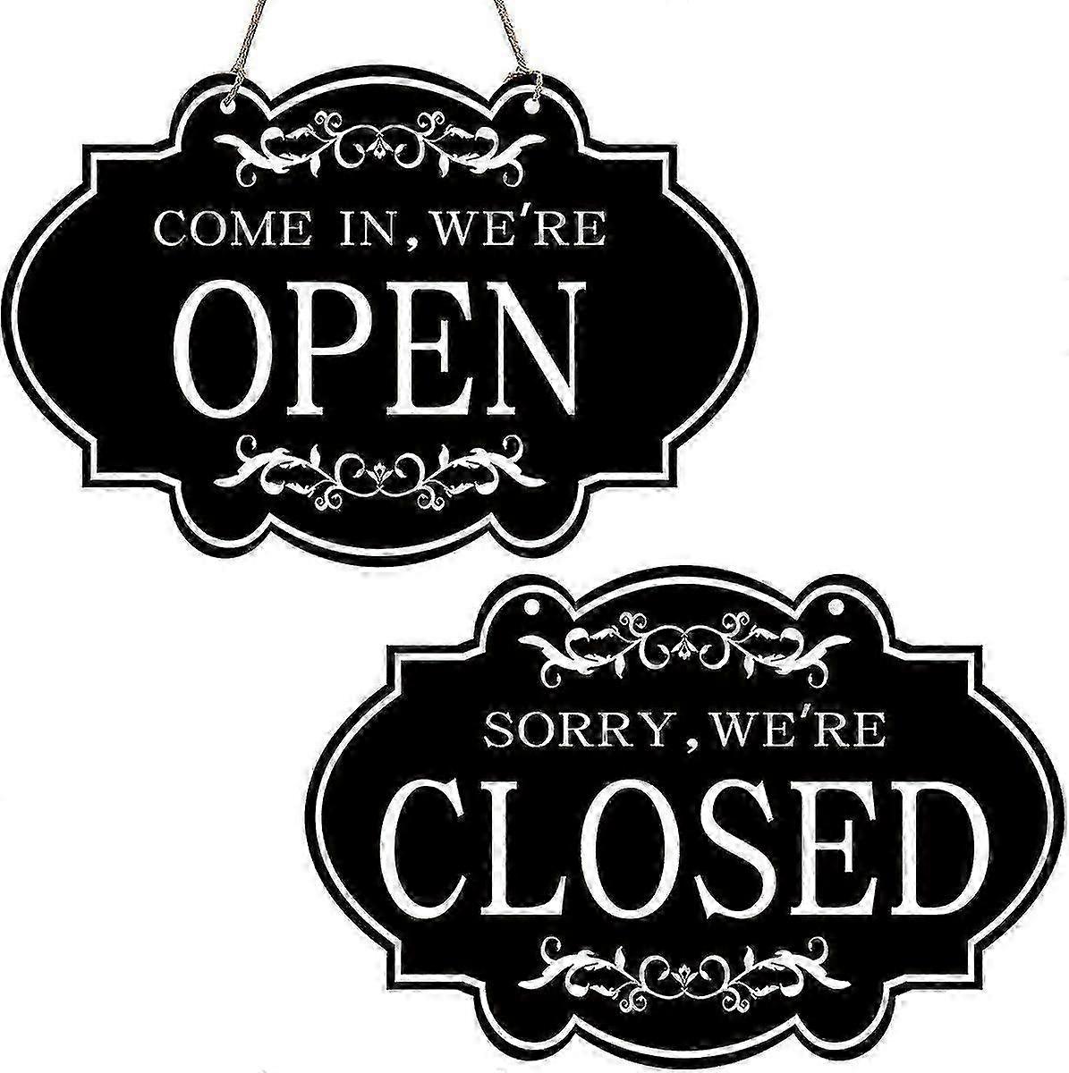 2pcs Open And Closed Business Sign Retro Wooden Stores Hanging Sign Waterproof Double Sided Reversible Business Sign For Coffee Shop Door 25