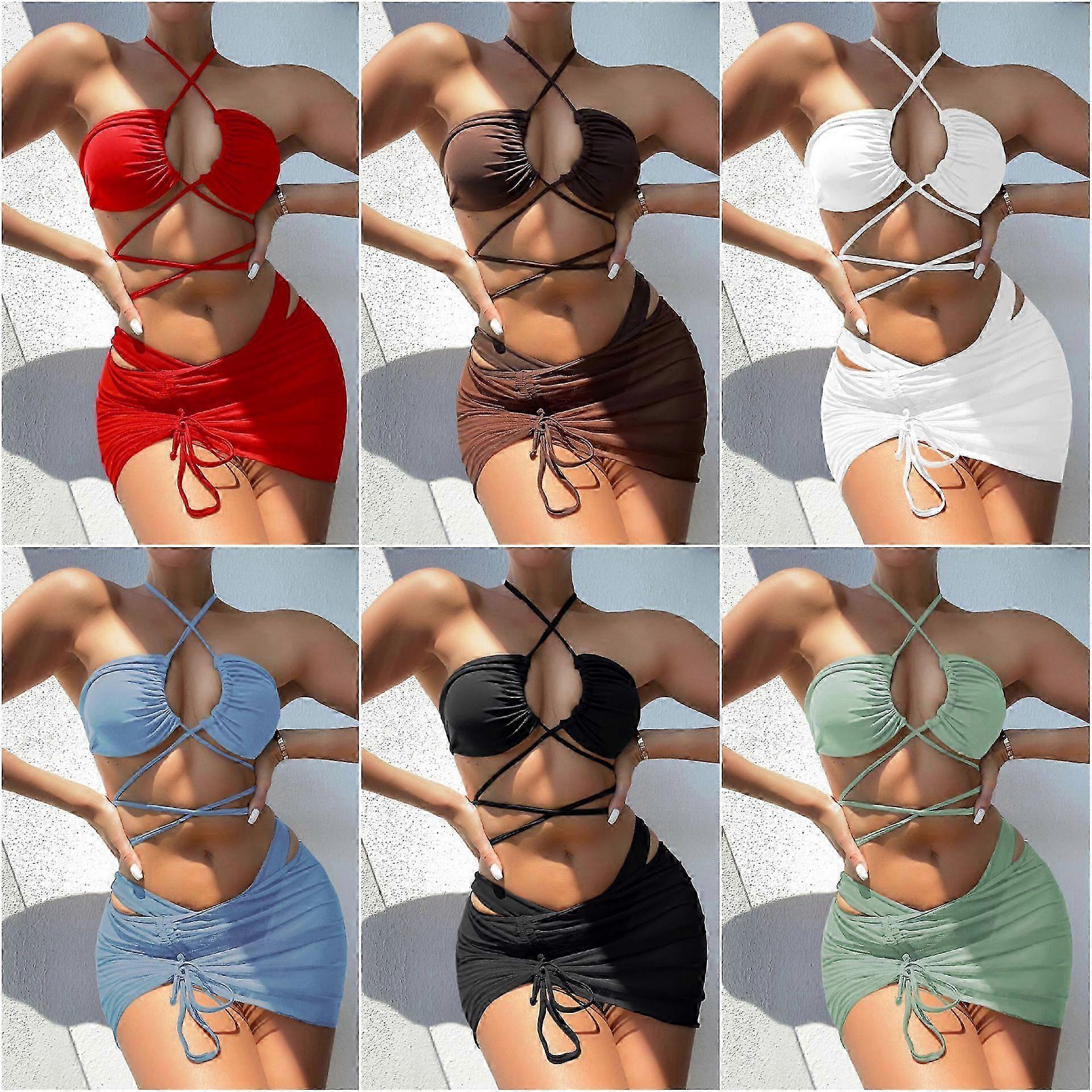 Summer Bikini Triangle Swimsuit Women Halter Swimwear Skirt 3 Pieces Set Elegant Bathing Suit Y-Z-T ZD B2 25-26