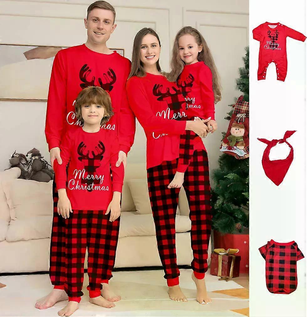 Christmas Elk Print Pajama SetParent-child Outfit Long Sleeve Crew Neck Top&Plaid Stripes PantsSleepwear & Loungewear