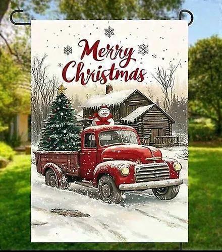 Beautiful 12X18" Adorable Merry Christmas Snowman And Old Red Truck Garden Flag JJE
