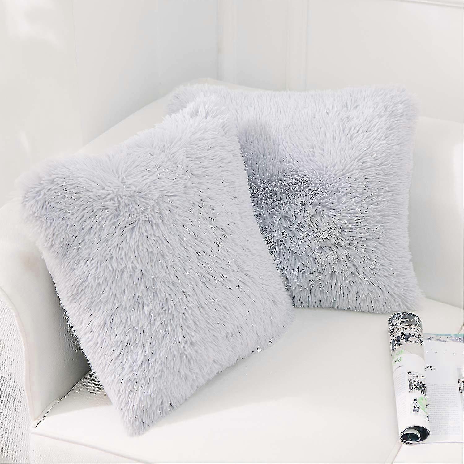 Set of 2 cushion covers 40 x 40 cm gray artificial fur fur cushion decorative decorative cushion cuddly cushion fluffy sofa 25-26