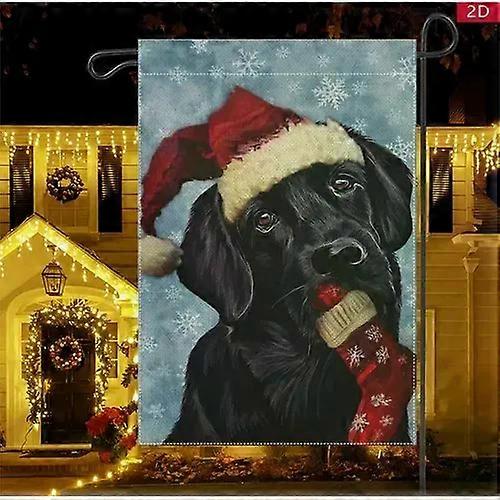 Christmas Dog Garden Flag Black Lab Santa Hat Holiday Outdoor Decoration JJE