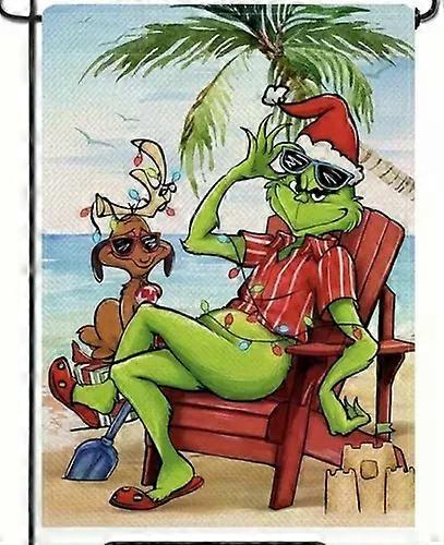 TROPICAL CHRISTMAS GARDEN FLAG "THE GRINCH" BEACH HOUSE DECOR LINEN 12"X18" YYX