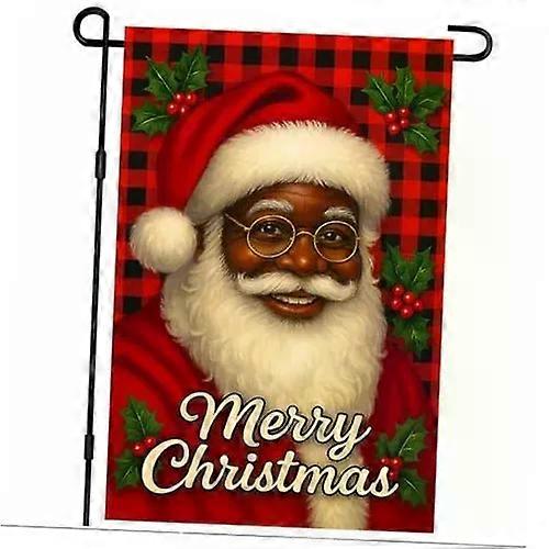 Merry Christmas Garden Flag with a Jolly Black Santa Claus Flags Red Buffalo JJE