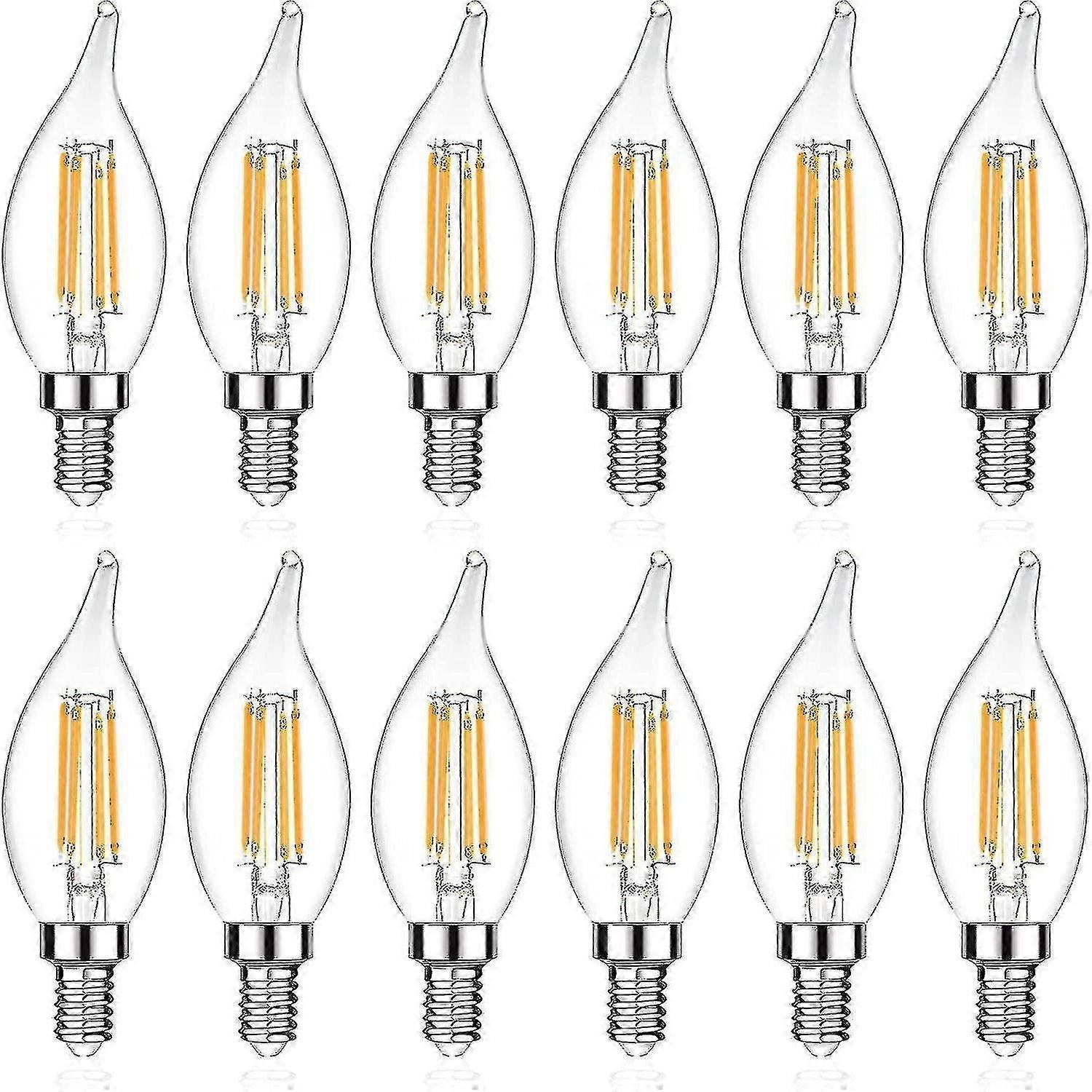 E12 110V Candelabra Led Light Bulb, Flame Tip Decorative Led Filament Candle Bulb, E12 Base, Non-dimmable, Pack Of 12 -HK1114