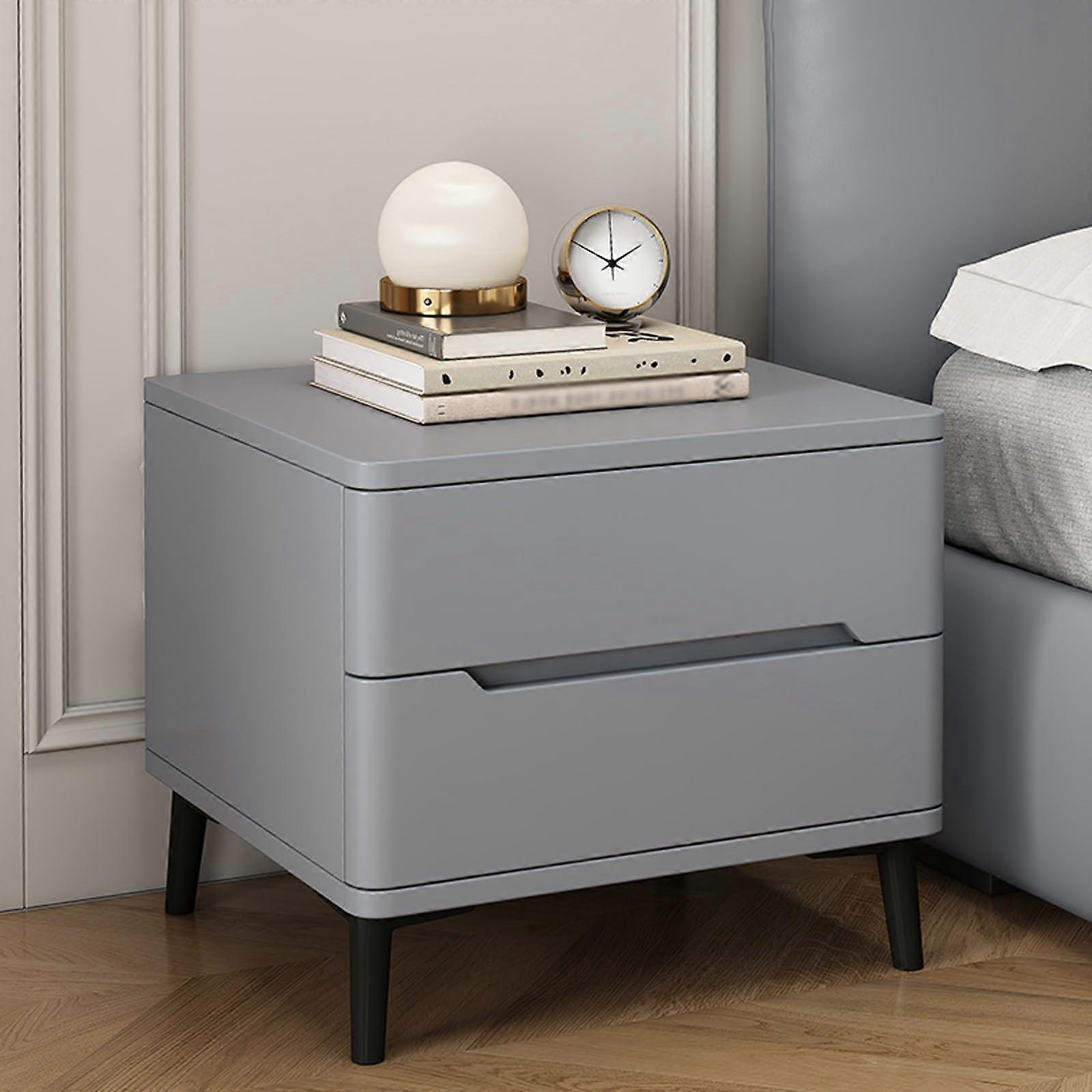 Bedside Table with Double Drawer Storage, Rock Plate Nightstand for Bedroom or Living Room, Light Gray 50x40x49cm