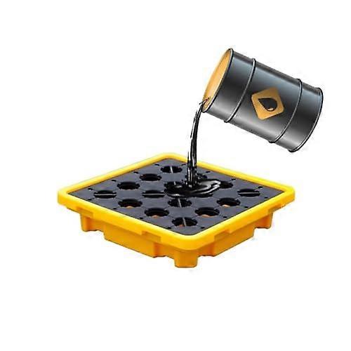 Modular Oil Spill Tray Leakproof Containment For Drums And Tanks, Drainable Poly Spill Pallet, Yellow 43 L 66x66x15 Cm