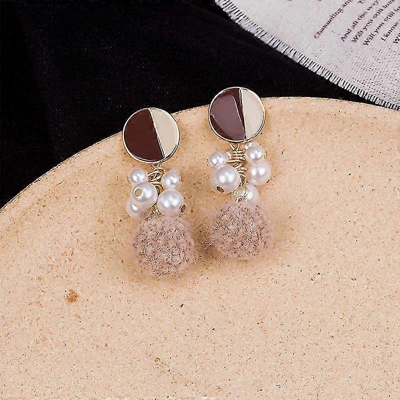 25-26 Silver Needle New Type Hairball Pearl String Restores Ancient Ways To Bump Color Fashionable Gentleness Eardrop