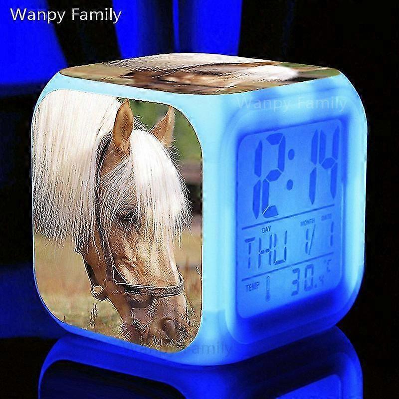 25-26 2023 New Horse Alarm Clock 7Color Changing LED Digital Clock Student Room Study Small Night Light Desk Clock Gift For Child
