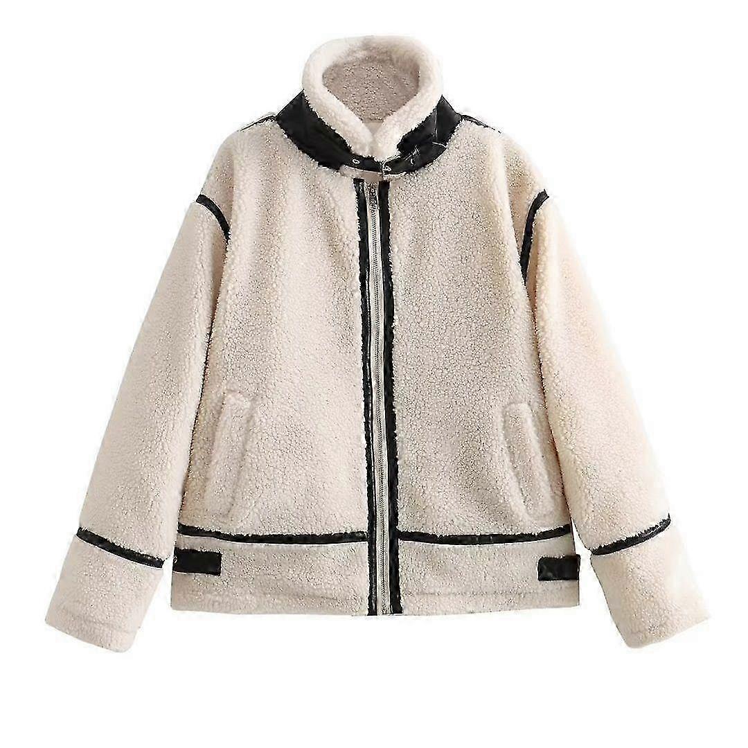 25-26 Autumn Women's Wear European American Style Casual Fur One Piece Lamb Wool Contrast Color Plush Warm Jacket