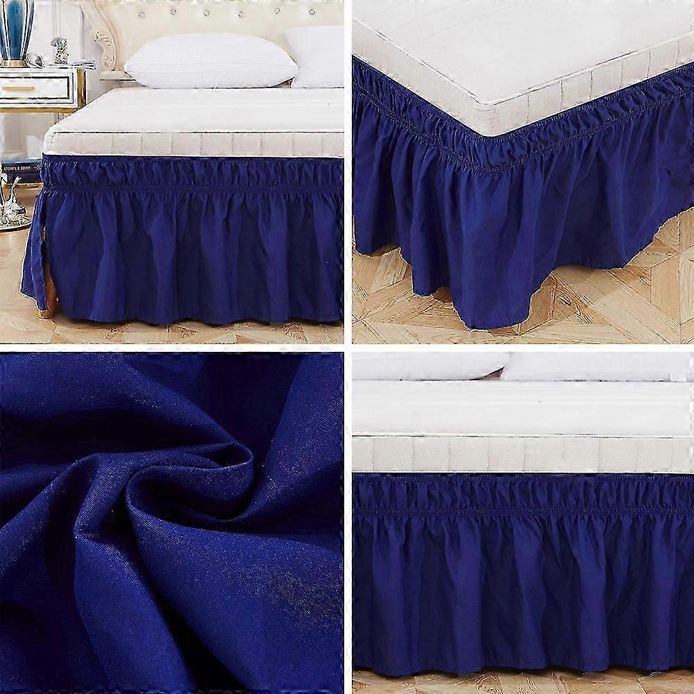 25-26 Bed Skirt Elastic Wrap Washable Fade Proof Wrap Around Bed Skirt For Home Hotel Ming Blue King