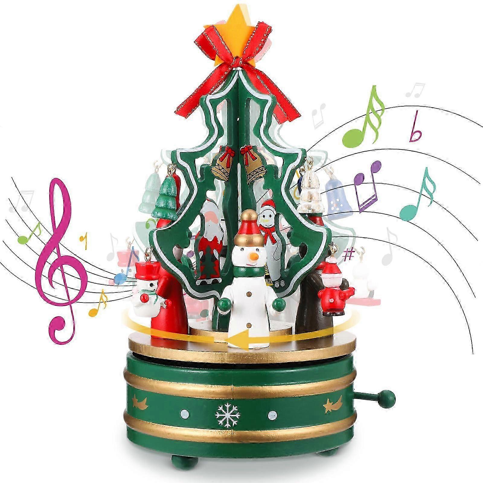 Christmas Tree Music Box, Wooden Rotating Music Boxes, Hand Crank Music Box, Vintage Engraved Mission Style Toy, Christmas Table Decoration (G[D]
