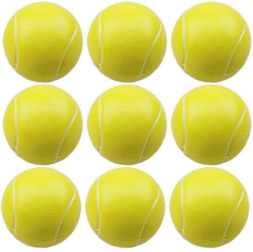[Material]: Made of safe and eco-friendly PU material, its elasticity gradually increases and it is durable. [Safety]: Soft to the touch, good bounce, low risk of injury and damage. [Fun and Dynamic Design]: Family, friends, teens, and classmates will love it! These soft play balls are perfect for jumping, throwing, and squeezing. [Multifunctional]: Ideal multifunctional ball for street tennis, beach tennis, practicing throwing and catching, etc. Product Description: Specifications: Material: PU, sponge. Dimensions: approx. 6.3 x 6.3 x 6.3 cm. Color: Yellow. Features: Made of safe and eco-friendly PU material, its elasticity gradually increases and it is durable. It makes no sound when squeezed. If you squeeze them several times, you will be surprised by their resilience. Children and adults will enjoy throwing and squeezing these mini foam sports balls. Great for stress relief. This fun ball game will make you happy and bring laughter and fun to your children, friends, or colleagues. Perfect as toy balls for birthday parties or any other celebration like Valentine's Day, Christmas, or Thanksgiving. Package includes: 9 soft tennis balls. Note: Due to differences in lighting and screen settings, the item's color may vary slightly from the pictures. There may be a slight difference in dimensions due to manual measurement.