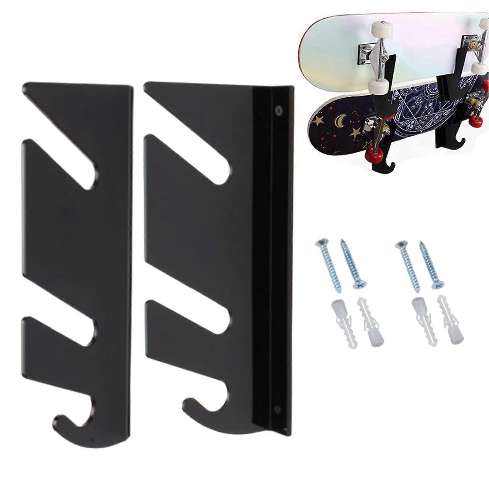 Skateboard Wall Mount Rack with Double Acrylic Arms, Hook Storage for Longboards and Shoes
