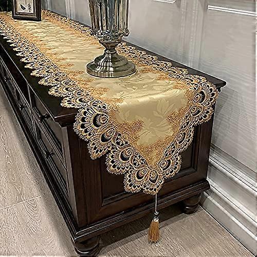 Oval Table Runner Embroidered Lace Pendant Tassel European Style For Tea Table TV Cabinet Dresser Tablecloth Dust Cover