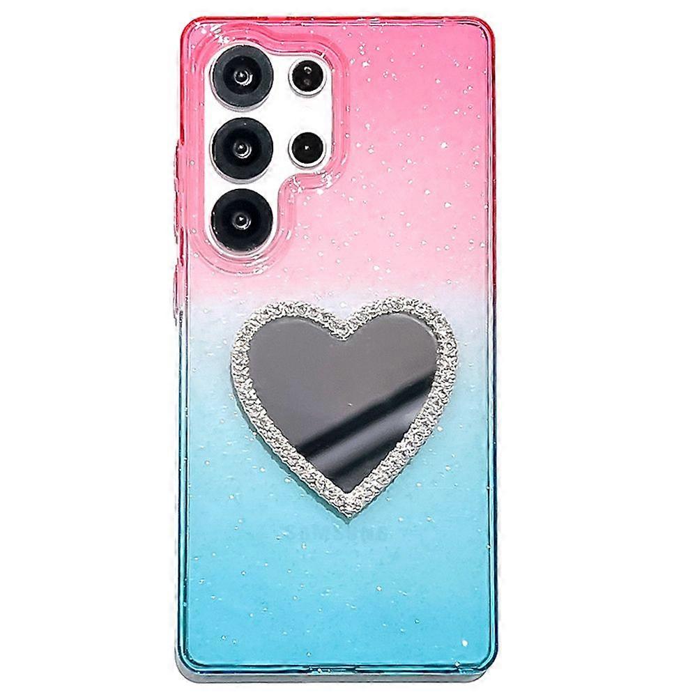 For Samsung Galaxy S25 Ultra Case Glitter Dual Color PC + TPU Clear Phone Cover with Heart-Shape Mirror