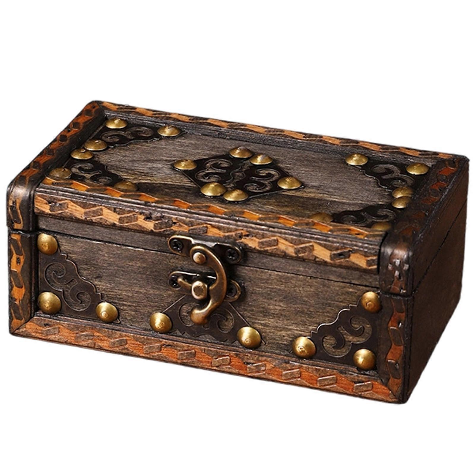 Wood Decorative Storage Box for Cards Jewelry Display Retro Styles Organizers With Antique Metal Accent Retro gray