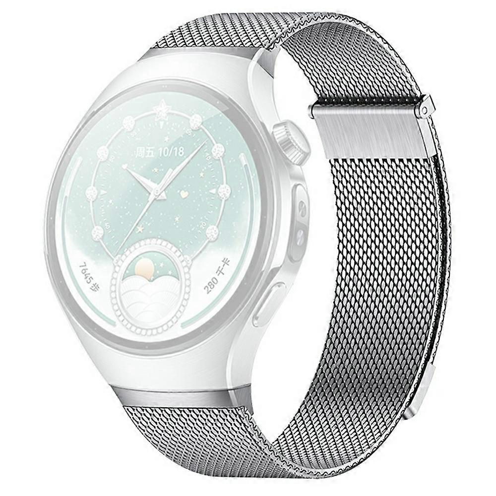 For Huawei Watch 5 42mm Milanese Magnetic Watch Band Quick Release Push Button Metal Strap - Silver
