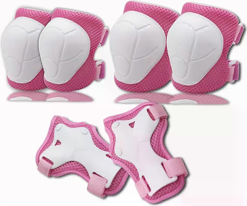 Kinder Protektoren Set Schoner - Inliner Knieschoner Kinder Schtzer Set 6er fr Kinder und Erwachsene - Ideale groflchige Schutzpolster Wei Rosa