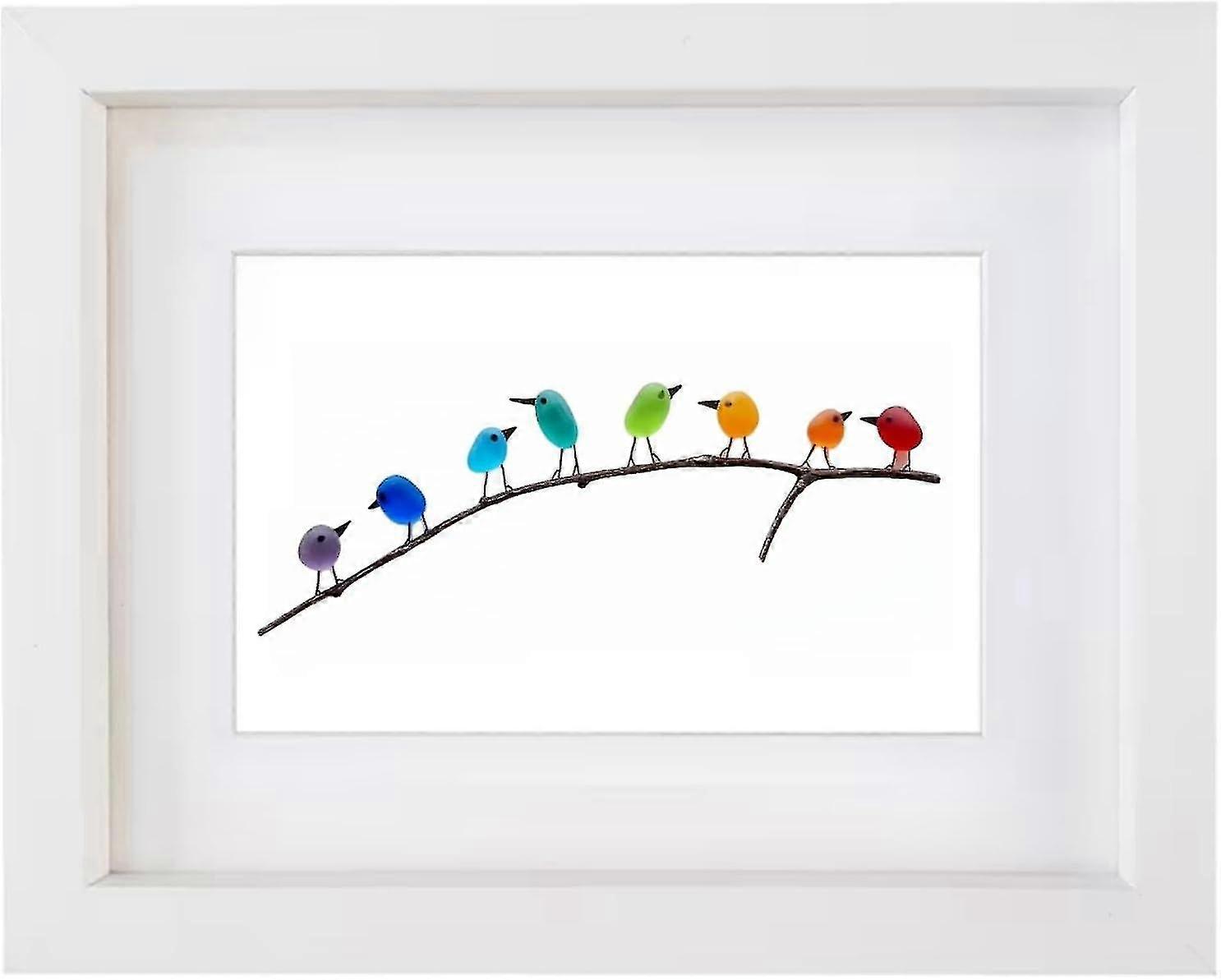 25-26 Sea Glass Rainbow Birds, Sea Glass Art, Sea Glass &driftwood Picture,rainbow Bird Wall Decor, Perfect Gift compatible with Christmas Birthday Ha