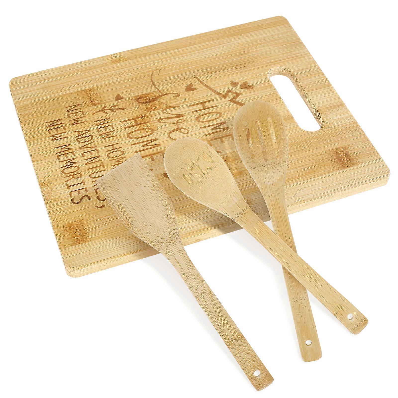 Bamboo Cutting Board & Utensil Set with Soup Spoon, Spatula, Slotted Spoon - Compatible with Wekvgz - Kitchen Gift Set