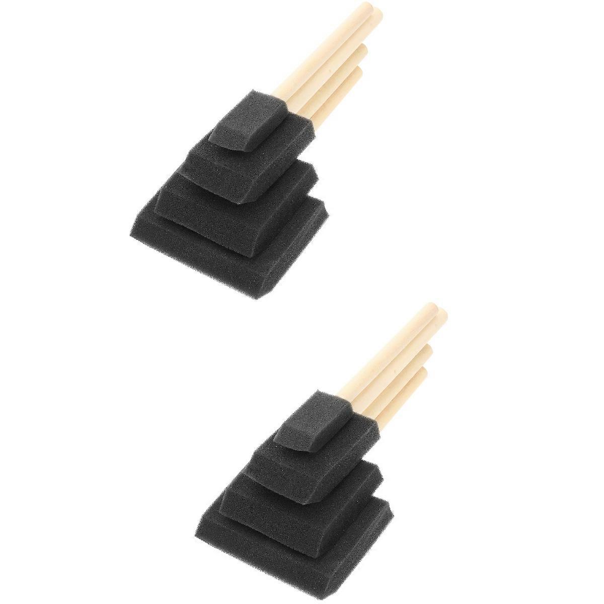 6 Sets Paint Brush Wooden Handle Foam Sponge Brush Portable Painting Crafts Tools