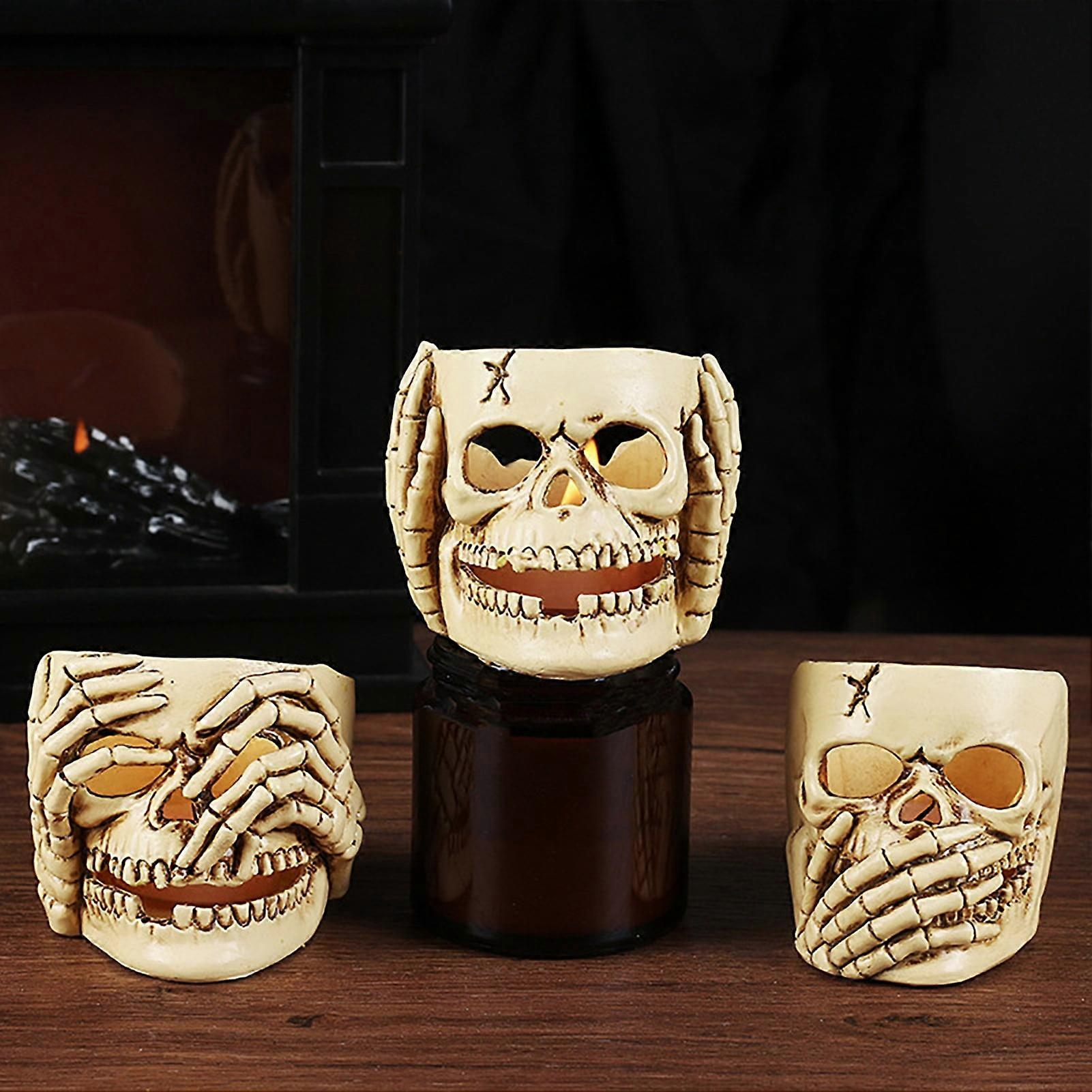 SUSUchens Skull Candle Holder Resin Tea Light Holder Gothic Candlestick Halloween Party Tabletop Decor for Home Room Living Room Style C
