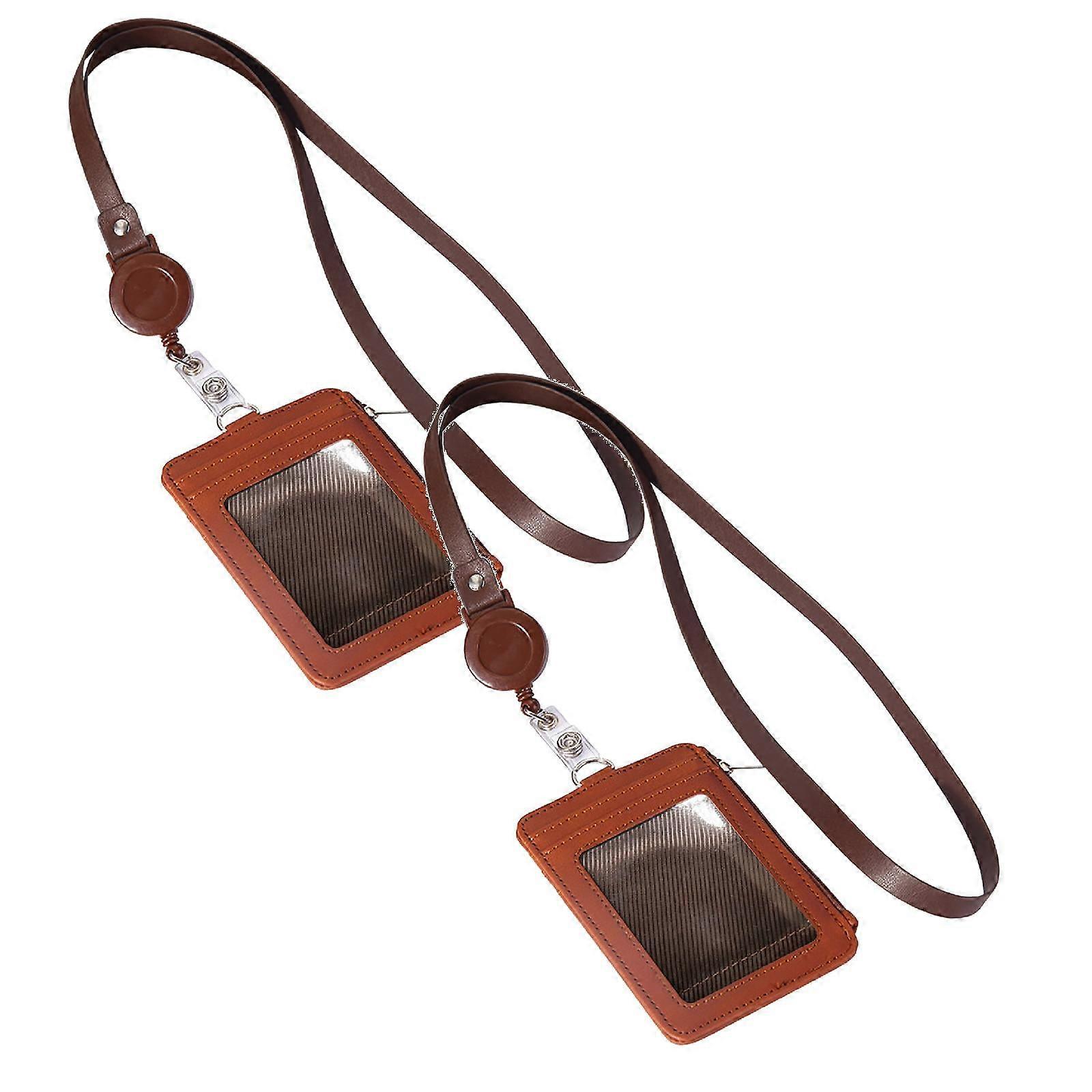 Xubond Office Supplies Badge Holder With Zip Slim PU Leather ID Badge Card Wallet Case With Neck Lanyard And Retractable Badge Reel Tools Brown