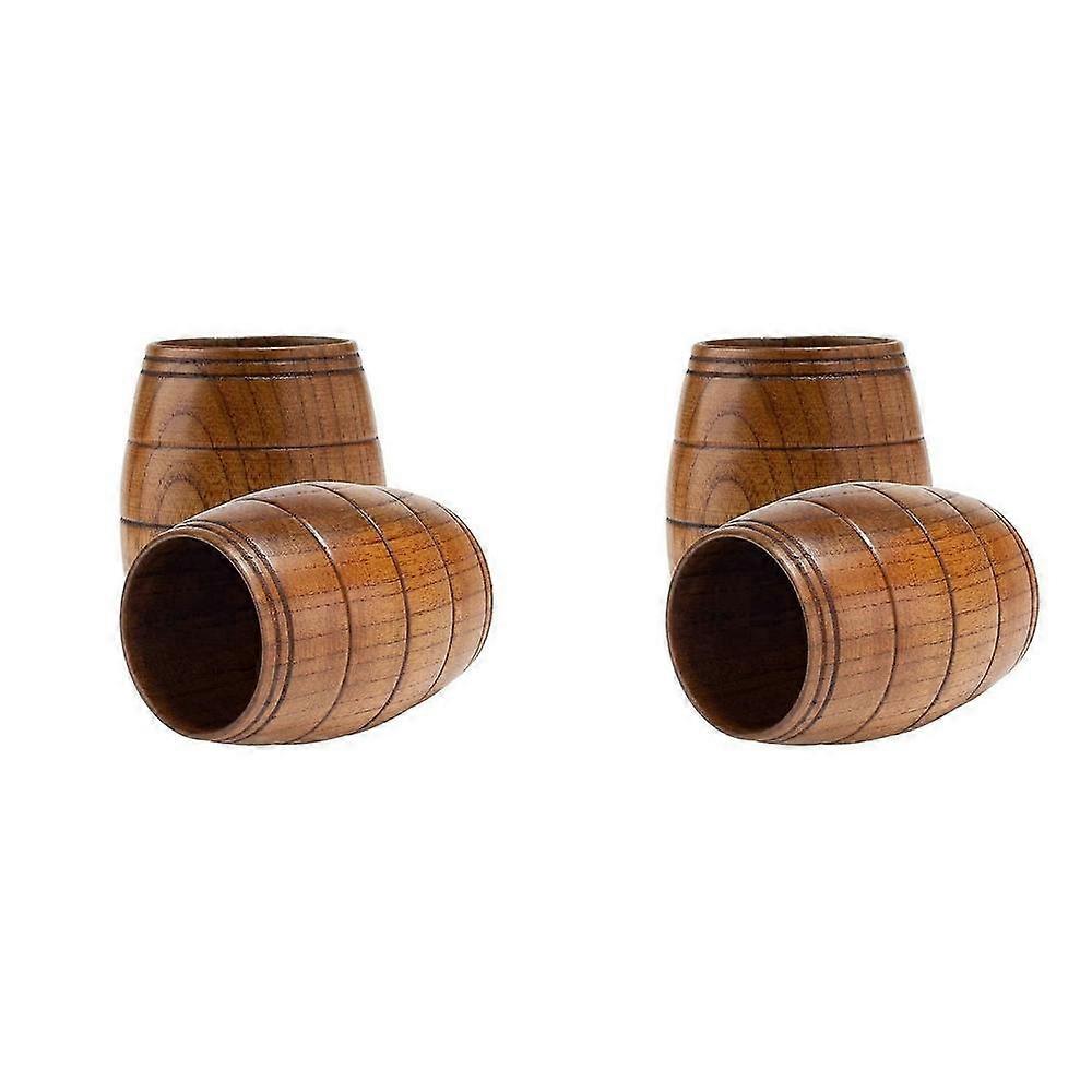 Set of 4 Hand-Carved Wooden Barrel Mugs for Beer, Coffee, and Tea, 210ml