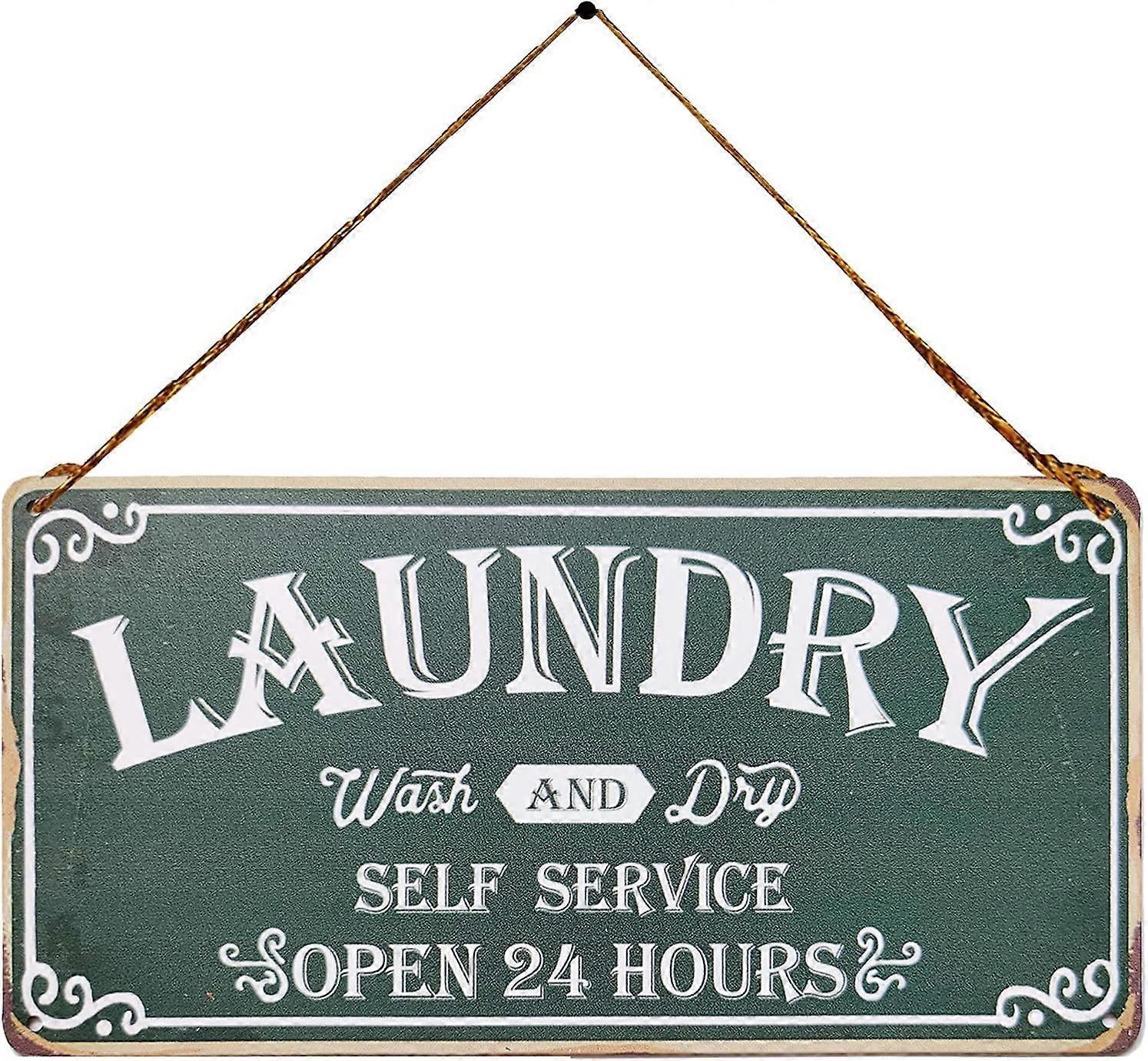 24H Laundry Wash & Dry Self Service Vintage Metal Sign, 5x10 Inch Rustic Wall Art for Laundry Room, Bathroom Decor