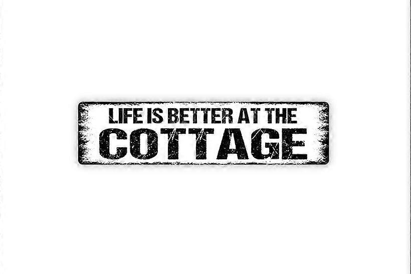 (Aluminum metal) Life Is Better At The Cottage Metal Sign Farmhouse Decor Rustic Street Metal Sign or Door Name Plate Plaque Size: 4 x 16 Inch