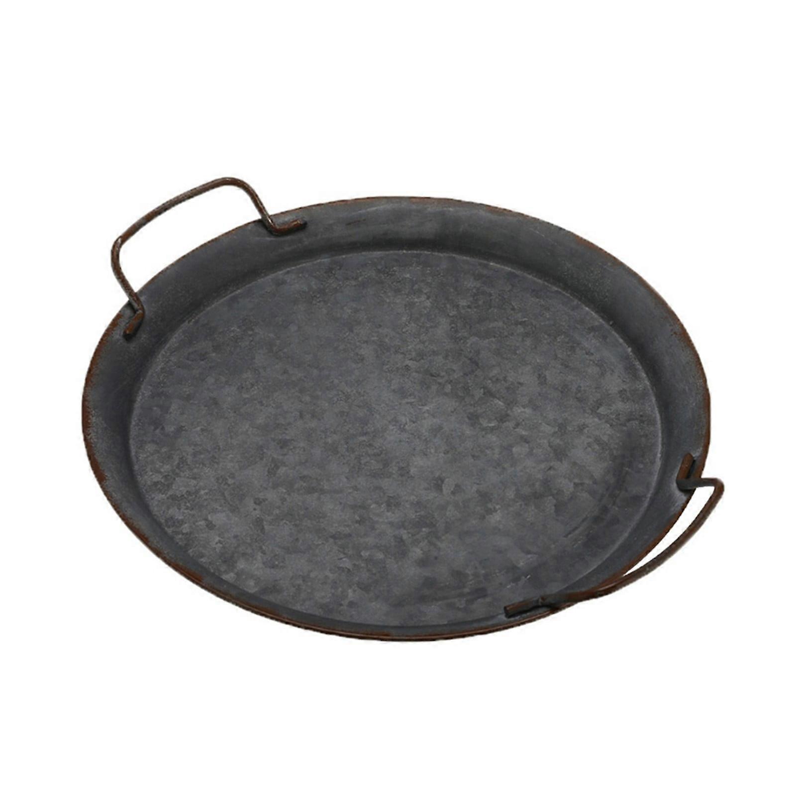 Industrial Style Metal Iron Serving Tray with Handle, Rustic Galvanized Storage Tray Round Coffee Table Home Decor Centerpiece Tray, 7.9inch