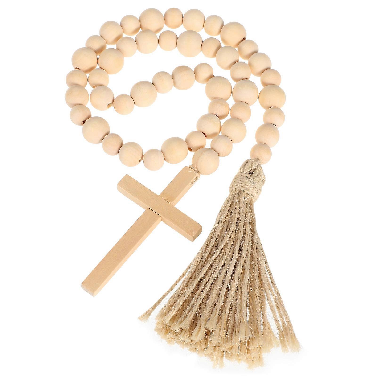Easter Wood Bead Garland with Tassel Cross - Farmhouse Rustic String