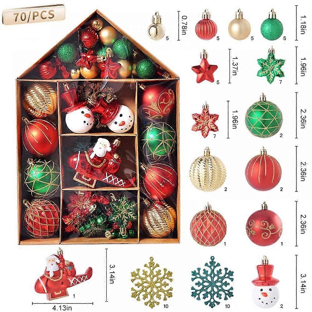 Christmas Balls Ornaments 70ct Includes Santa Claus Snowflakes for Xmas Tree Shatterproof Christmas Tree Decorations with Hanging Rope (Red & Green)