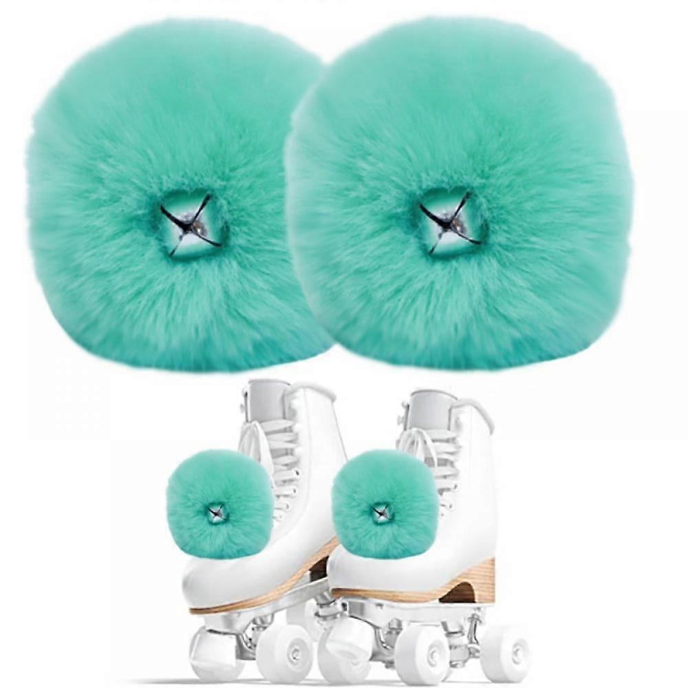 2Pcs Roller Skate Pom Poms with Jingle Bells, Fluffy Tie-on Fuzzy Poms for Women Girls, Compatible with Quad Roller Skates Accessories