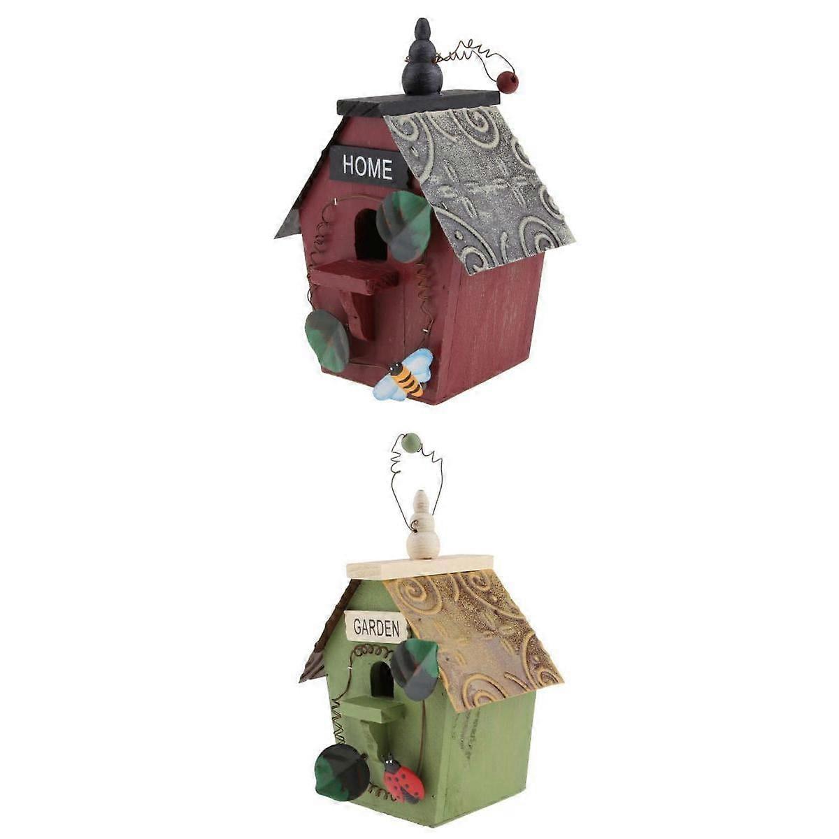 2 Pieces Natural Wood Decorative Birdhouse, Hanging Wooden Garden Bird House for