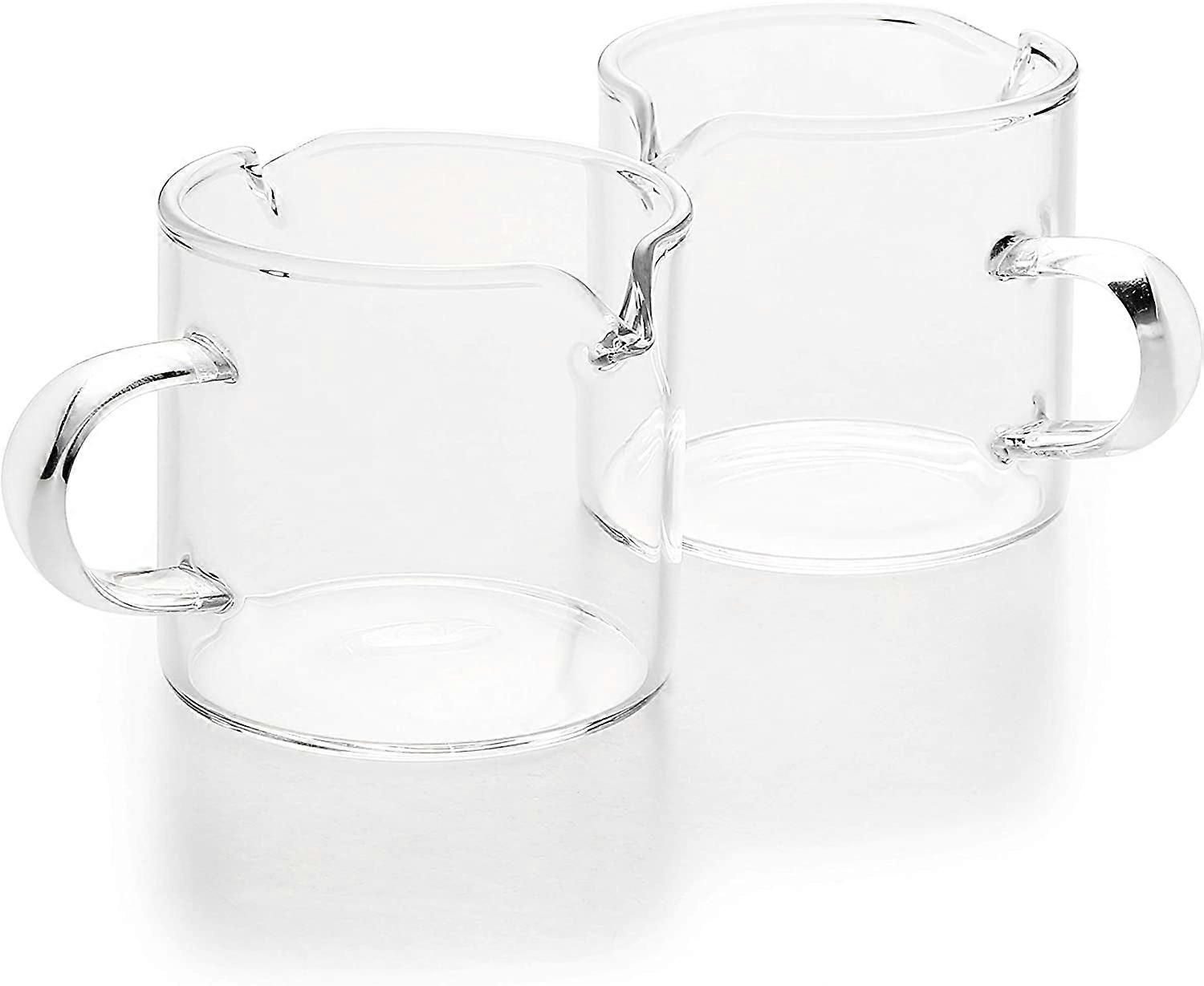 Shot Glasses Espresso Parts Double Spouts Milk Cup Clear Glass (Clear Glass-2Pack)